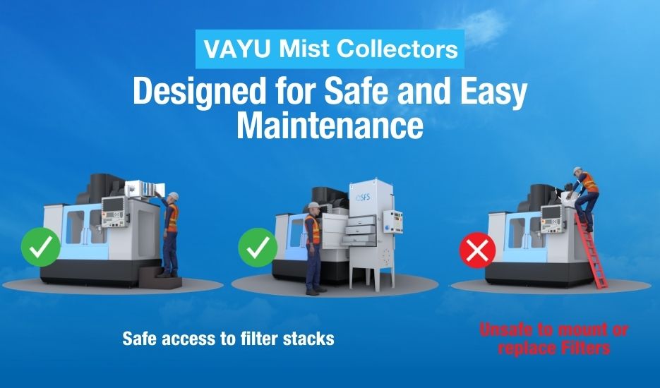 A mist collector directly captures the mist at the source, arresting spread and ensuring effective filtration is brought about. This leads to a healthier workforce, cleaner air, reduced maintenance for machines and lower long-term operating costs.